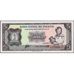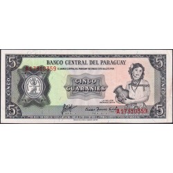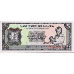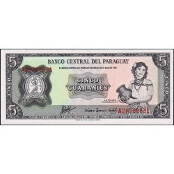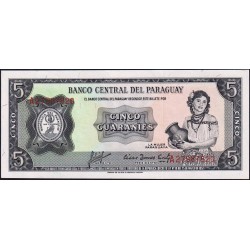 Aperçu rapide Paraguay - Pick 195b_2 - 5 guaranies - Série A - 25/03/1952 (1963) - Etat : NEUF 4,00 €