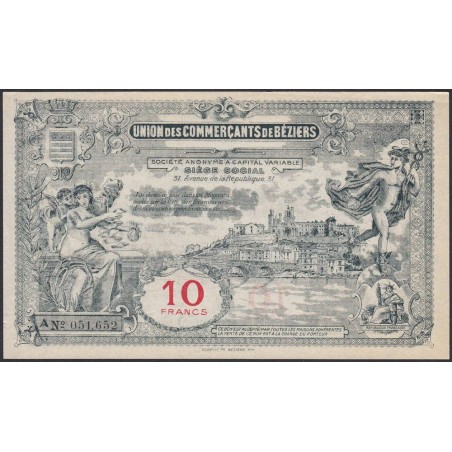 34 - Béziers - Union des Commerçants - 10 francs - Série A - (1920-1925) - Etat : SPL