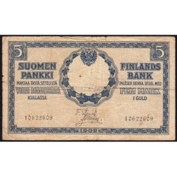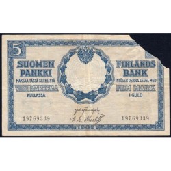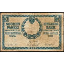 Aperçu rapide Finlande - Pick 30_2 - 5 markkaa kullassa - Série II - 1909 (1918) - Etat : AB à B- 12,00 €