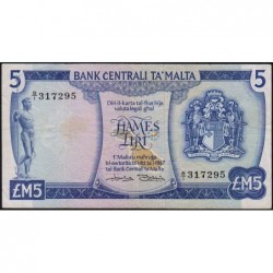 Malte - Pick 32a - 5 liri - Série B/1 - 1973 - Etat : TTB