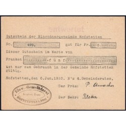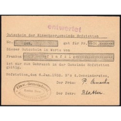 Aperçu rapide Suisse - Commune de Hofstetten - 50 francs - Type 1 - 06/01/1933 - Annulé - Etat : SPL 230,00 €