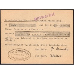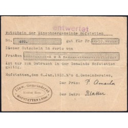 Aperçu rapide Suisse - Commune de Hofstetten - 20 francs - Type 1 - 06/01/1933 - Annulé - Etat : SPL 180,00 €