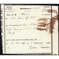 Aperçu rapide Suisse - Genève - Quittance Octroi - 6 francs 27 centimes - 03/05/1843 - Etat : TB 4,00 € RUPTURE