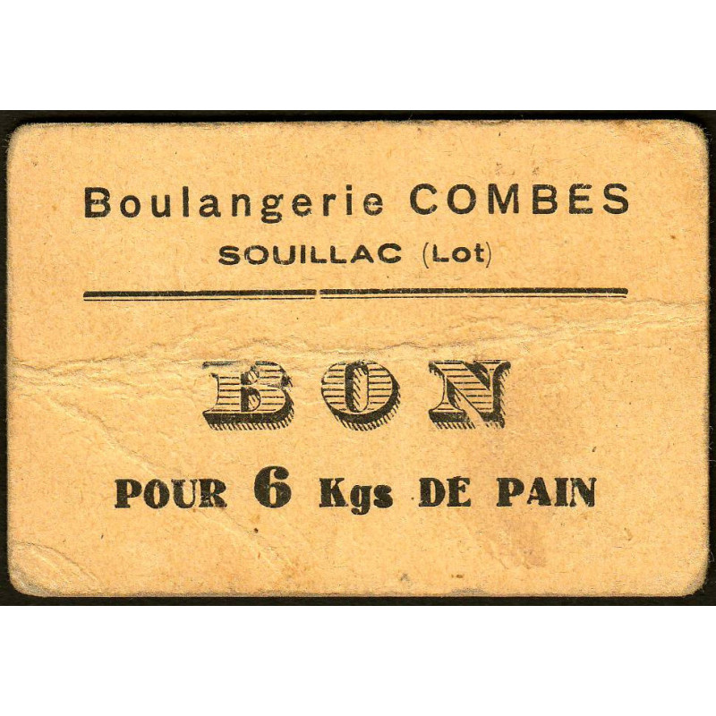 46 - Souillac - Boulangerie Combes - Bon pour 6 kgs de pain - Etat : TB