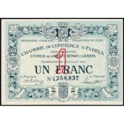 Aperçu rapide Evreux (Eure) - Pirot 57-26a - 1 franc - Chiffre 4 - 27/07/1922 - Etat : SPL+ 35,00 €