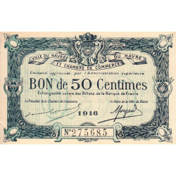 Le Havre - Pirot 68-14b - 50 centimes - 1916 - Etat : TTB
