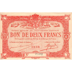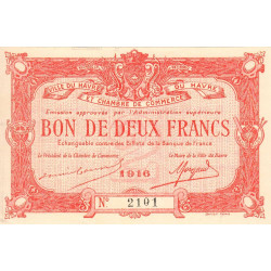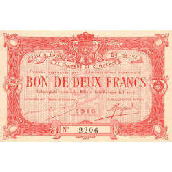 Le Havre - Pirot 68-16a - 2 francs - 1916 - Etat : SPL+