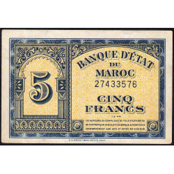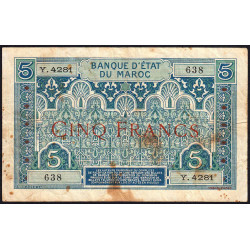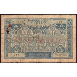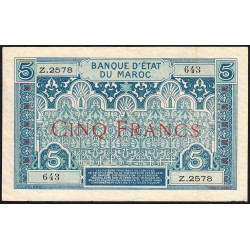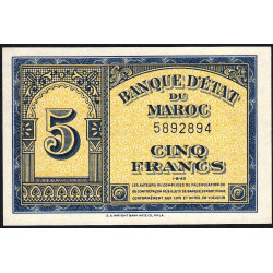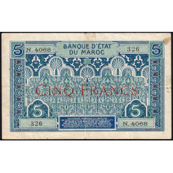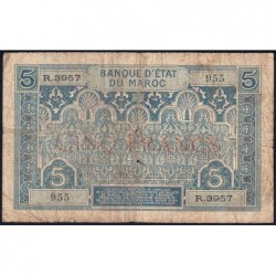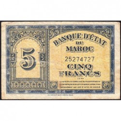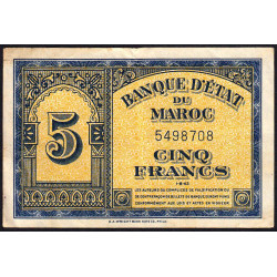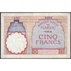 Aperçu rapide Maroc - Pick 23Ab - 5 francs - Série G.853 - 14/11/1941 - Etat : TTB- 30,00 € RUPTURE