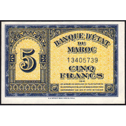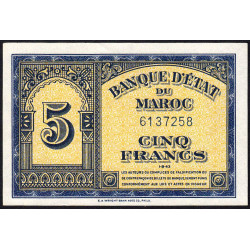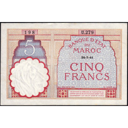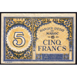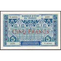 Aperçu rapide Maroc - Pick 9_5 - 5 francs - Série V.4341 - 1941 - Etat : SUP à SUP+ 100,00 € RUPTURE
