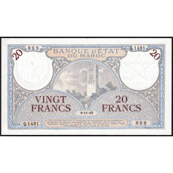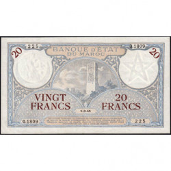 Aperçu rapide Maroc - Pick 18b_2 - 20 francs - Série Q.1481 - 09/11/1942 - Etat : SUP 120,00 € RUPTURE