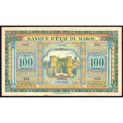Aperçu rapide Maroc - Pick 27_2 - 100 francs - Série P313 - 01/08/1943 - Etat : TTB- 60,00 € RUPTURE