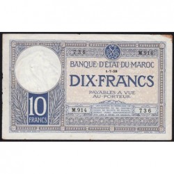 Aperçu rapide Maroc - Pick 11b_3 - 10 francs - Série M.914 - 01/07/1928 - Etat : TTB 200,00 € RUPTURE
