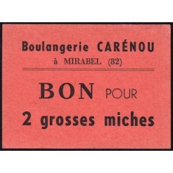 Aperçu rapide 82 - Mirabel - Boulangerie Carénou - Bon pour 2 grosses miches - 1920/1930 - Etat : SPL+ 10,00 €