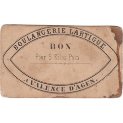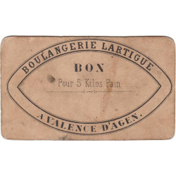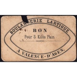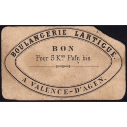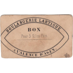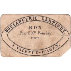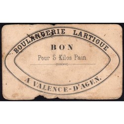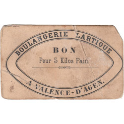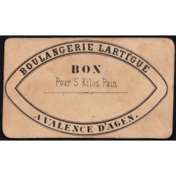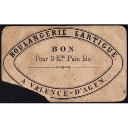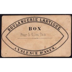 Aperçu rapide 82 - Valence d'Agen - Boulangerie Lartigue - Bon pour 5 kg Pain - 1920/1930 - Etat : AB 1,25 €