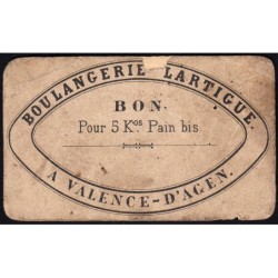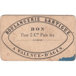 Aperçu rapide 82 - Valence d'Agen - Boulangerie Lartigue - Bon pour 5 kg Pain bis - 1920/1930 - Etat : AB 1,25 €