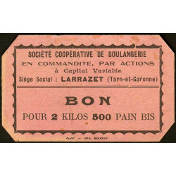 Aperçu rapide 82 - Larrazet - Sté Coopérative de Boulangerie - Bon pour 2 kilos 500 pain bis - 1920/1930 - Etat : SUP+ 9,00 € RUPTURE