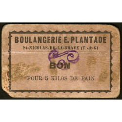 Aperçu rapide 82 - St-Nicolas de la Grave - Boul. E. Plantade - Bon pour 5 kilos de pain - 01/07/1920 - Etat : TB 6,00 €
