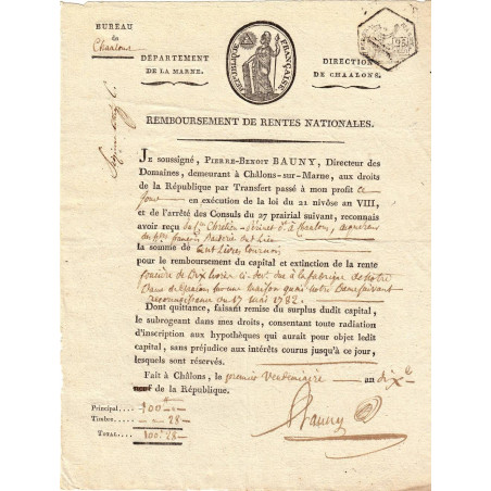 Marne - Chalons-en-Champagne - Consulat - 1801 - Remboursement rentes nationales - Etat : SUP