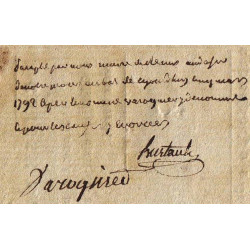 Texte au verso : Paraphé par nous maire de Reims de notre procès verbal de ce jourd'hui cinq mars 1792 lequel dénommé Varoquières y dénonce ce pour les causes énoncées