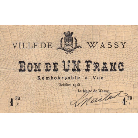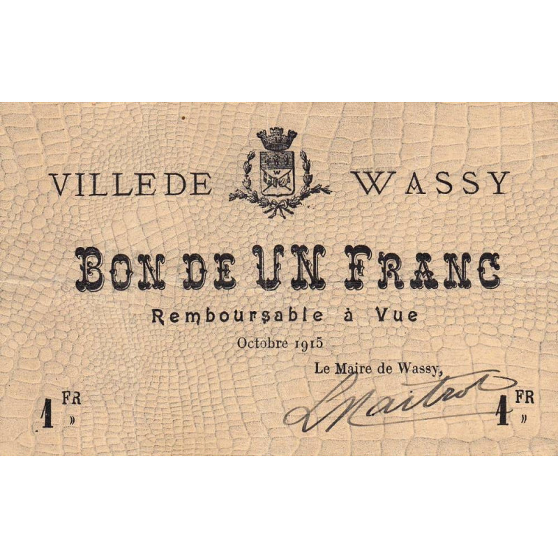 52 - Pirot 32 - Wassy - 1 franc - Octobre 1915 - Etat : TTB