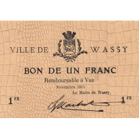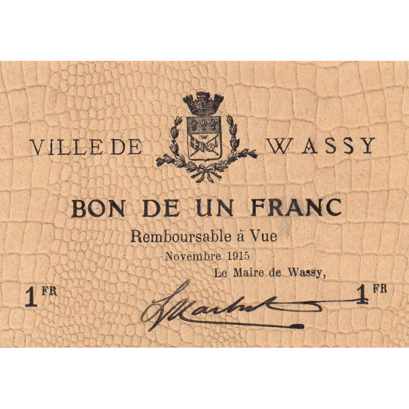 • 52 - Pirot 38 - Wassy - 1 franc - Novembre 1915 - Etat : SPL à NEUF