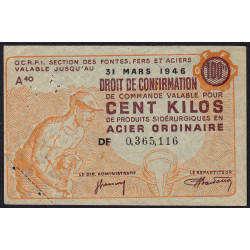 Aperçu rapide 100 kg acier ordinaire - 31/03/1946 - Laragne (05) et Montbrison (42) - Série DF - Etat : TTB 18,00 € RUPTURE