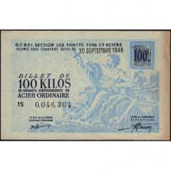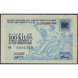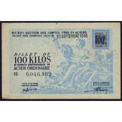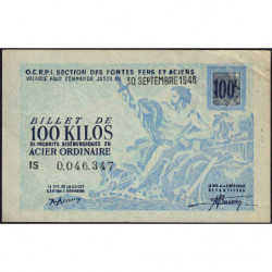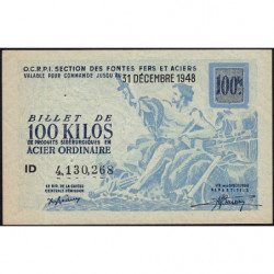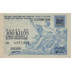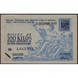 Aperçu rapide 100 kg acier ordinaire - 31/12/1948 - Endossé à Rive-de-Gier (42) - Série ID - Etat : TTB+ 9,00 €