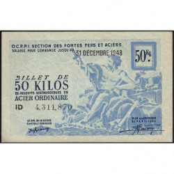 Aperçu rapide 50 kg acier ordinaire - 31/12/1948 - Endossé à Saint-Etienne (42) - Série ID - Etat : SUP+ 10,00 €