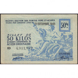 Aperçu rapide 50 kg acier ordinaire - 31/12/1948 - Endossé à Saint-Héand (42) - Série ID - Etat : SUP+ 10,00 €