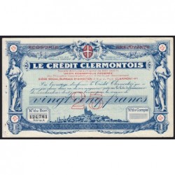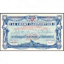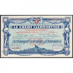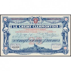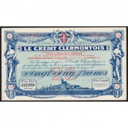 Aperçu rapide 63 - Clermont-Ferrand - Le Crédit Clermontois - 25 francs - Série A - (1920-1925) - Etat : TTB+ 15,00 €
