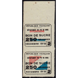 Aperçu rapide Rationnement - Sucre - 11/1918 et 12/1918 - Puy-de-Dome (63) - Etat : TTB+ 4,00 € RUPTURE