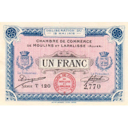 Aperçu rapide Moulins et Lapalisse - Pirot 86-4a - 1 franc - Série T 120 - 12/05/1916 - Etat : NEUF 10,00 € RUPTURE