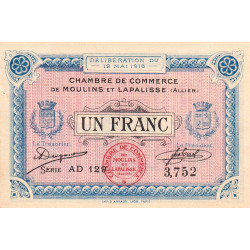 Aperçu rapide Moulins et Lapalisse - Pirot 86-4b - 1 franc - Série AD 129 - 12/05/1916 - Etat : SUP 8,00 €