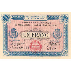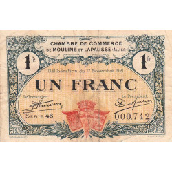 Aperçu rapide Moulins et Lapalisse - Pirot 86-24 - 1 franc - Série 49 - 17/11/1921 - Etat : TB- 2,00 € RUPTURE