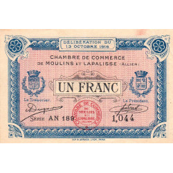 Aperçu rapide Moulins et Lapalisse - Pirot 86-9a - 1 franc - Série L 162 - 13/10/1916 - Etat : NEUF 10,00 €