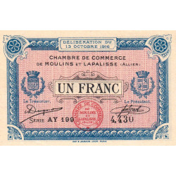 Aperçu rapide Moulins et Lapalisse - Pirot 86-9b - 1 franc - Série AY 199 - 13/10/1916 - Etat : SPL 9,00 € RUPTURE