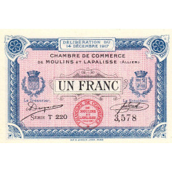 Aperçu rapide Moulins et Lapalisse - Pirot 86-13a - 1 franc - Série T 220 - 14/12/1917 - Etat : NEUF 10,00 € RUPTURE