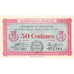 Aperçu rapide Moulins et Lapalisse - Pirot 86-15 - 50 centimes - Série 280 - 09/01/1920 - Etat : SUP 8,00 €