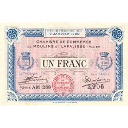 Aperçu rapide Moulins et Lapalisse - Pirot 86-17b - 1 franc - Série AM 288 - 09/01/1920 - Etat : SUP 8,00 €