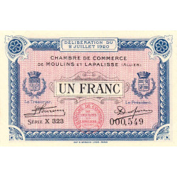 Aperçu rapide Moulins et Lapalisse - Pirot 86-17a - 1 franc - Série I 259 - 09/01/1920 - Etat : TB+ 4,00 €
