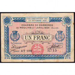 Aperçu rapide Moulins et Lapalisse - Pirot 86-9b - 1 franc - Série AT 195 - 13/10/1916 - Etat : TTB 5,00 €