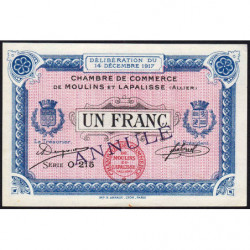 Aperçu rapide Moulins et Lapalisse - Pirot 86-14 - 1 franc - Série O 215 - 14/12/1917 - Annulé - Etat : SUP+ 40,00 €