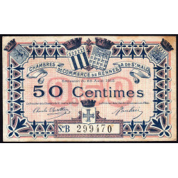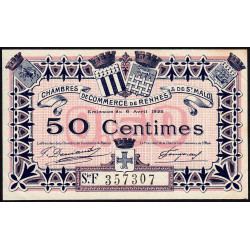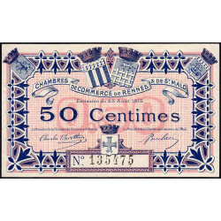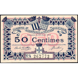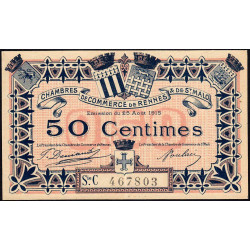 Aperçu rapide Rennes et Saint-Malo - Pirot 105-17 - 50 centimes - Série C - 25/08/1915 - Etat : SUP 10,00 € RUPTURE