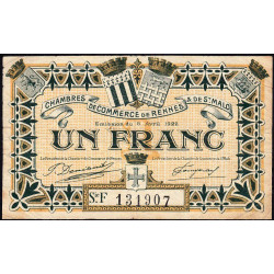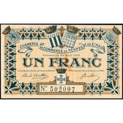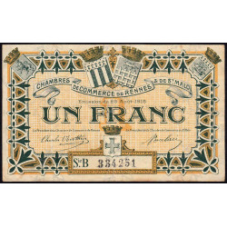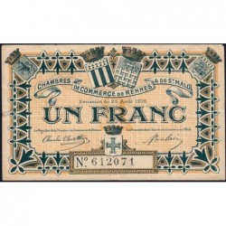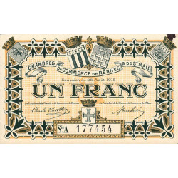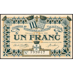 Aperçu rapide Rennes et Saint-Malo - Pirot 105-3 - 1 franc - Sans série - 25/08/1915 - Etat : SUP 10,00 €