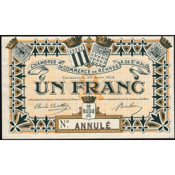 Aperçu rapide Rennes et Saint-Malo - Pirot 105-4 - 1 franc - 25/08/1915 - Annulé - Etat : SUP 40,00 €