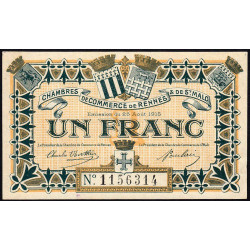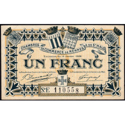 Aperçu rapide Rennes et Saint-Malo - Pirot 105-11 - 1 franc - Série A - 25/08/1915 - Etat : SUP+ 10,00 € RUPTURE