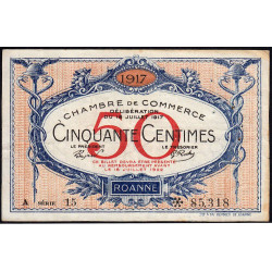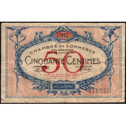 Aperçu rapide Roanne - Pirot 106-16 - 50 centimes - Série B 47 - 18/07/1917 - Etat : pr.NEUF 11,00 €