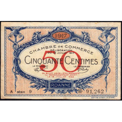 Aperçu rapide Roanne - Pirot 106-15 - 50 centimes - Série A 9 - 18/07/1917 - Etat : TB+ 6,00 € RUPTURE