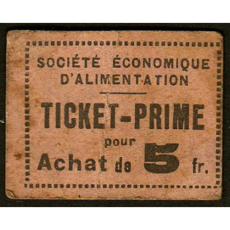 69 - Lyon - Sté Eco. d'Alimentation - Ticket prime 5 fr. d'achat - Etat : TB