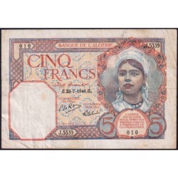 Aperçu rapide Algérie - Pick 77b - 5 francs - Série Y.5330 - 19/07/1941 - Etat : SUP 35,00 € RUPTURE